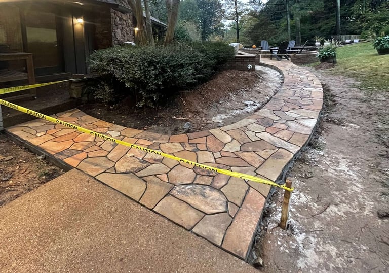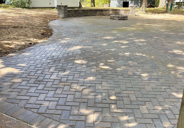Paver patios and walkways installed on solid bases for long-lasting durability.